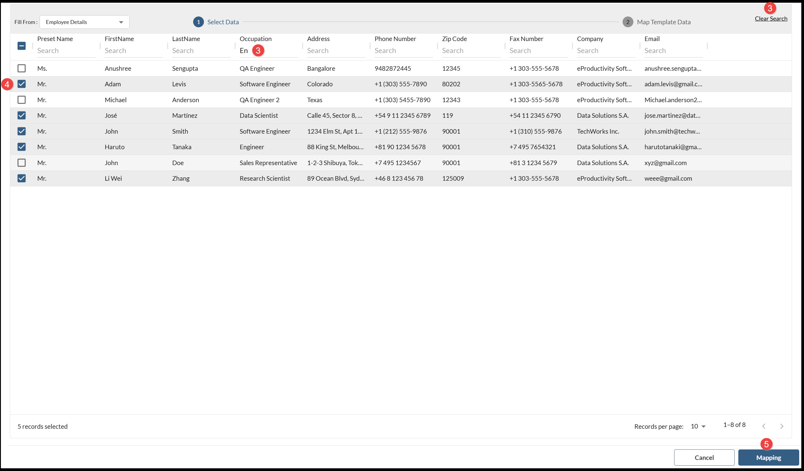 - When you have selected the records you want to include, choose Mapping.