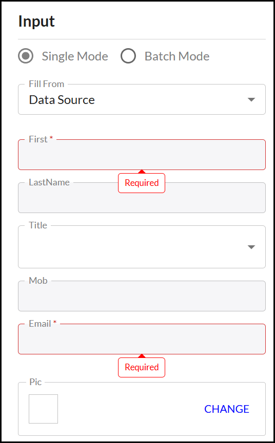 You can also use an Address Book or Data Source to select a record to use in Single Mode: